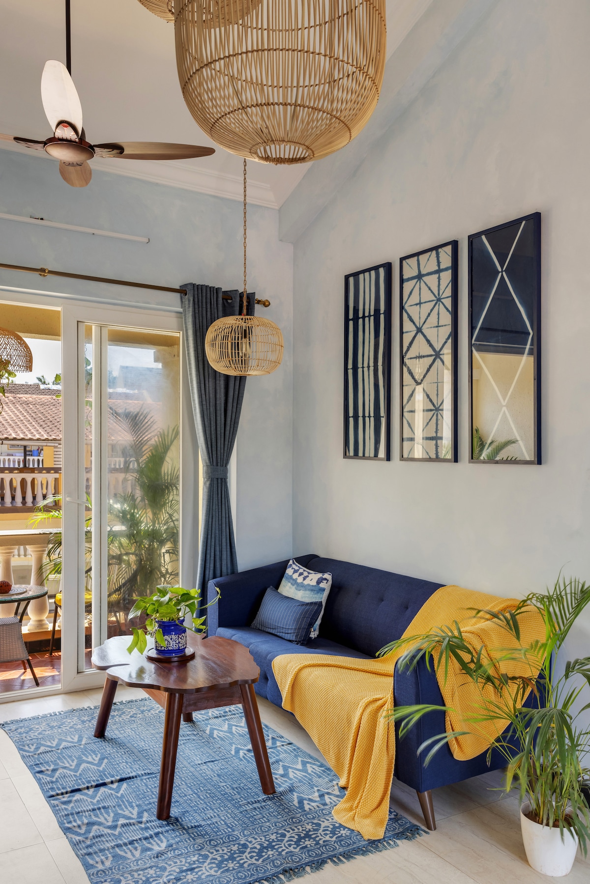 Este espacioso y privado ático de 2 dormitorios y 2 baños, enclavado en las tranquilas calles de Vagator, está cubierto de árboles y meticulosamente diseñado para crear un nido de comodidad para nuestros huéspedes. Equipado con tragaluces, te permite disfrutar de los cielos soleados y estrellados de Goa desde la comodidad de sus lujosos y modernos interiores con aire acondicionado. La terraza privada te permite relajarte con la brisa marina fresca de la cercana playa de Vagator, mientras absorbes los espectaculares colores del cielo al atardecer de Goa.