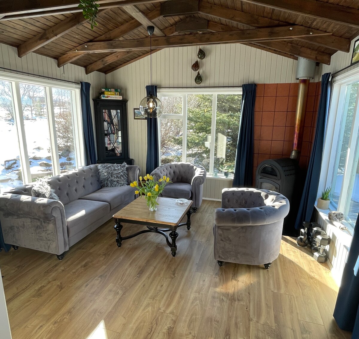 Welcome to the newly renovated farmhouse in Esjuberg, where you sleep by the roots of the mountain. This house truly has it all, from a beautiful ocean view, horses in the backyard, and a phenomenal view over Reykjavik. Esjuberg plays a big part in a very interesting Icelandic Viking story called the Kjalnesinga Saga. In this story, a woman named Esja lived here along with her foster son Búi, who became a very mighty man.