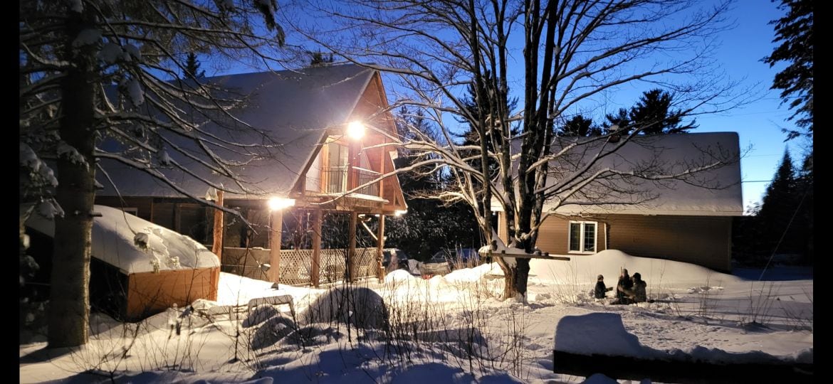 Chalet rodeado de árboles, situado en una calle tranquila a dos pasos del lago Chantelle y del río Jean Venne. Dos dormitorios cerrados, cocina totalmente equipada, estufa de leña (leña incluida). En las inmediaciones: Spa La source en Rawdon, recorrido Arbraska, estación de esquí Montcalm, Parque de la Forêt Ouareau (senderismo, esquí de fondo, raquetas de nieve, escalada). *Wifi y precios asequibles entre semana para teletrabajar.