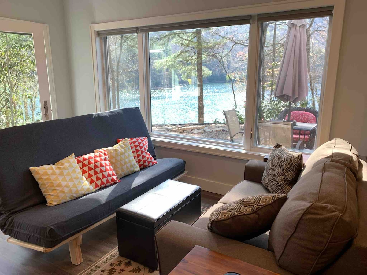 Hermoso entorno aislado en Wolf Lake. Apartamento estudio privado con cocina completa y baño. Impresionantes vistas al lago y acceso completo al lago con uso de kayaks, canoa y muelle en la cala adyacente. Patio privado con chimenea y parrilla. El sendero Paradise Falls está a 1 milla de distancia. Cerca del área rural del valle de Panthertown con múltiples senderos y cascadas. A 45 minutos de Brevard, Sylva y Cashiers, Carolina del Norte. Fácil acceso en coche a Asheville y Biltmore House. Aparcamiento en el lugar. Se admiten mascotas con buen comportamiento.