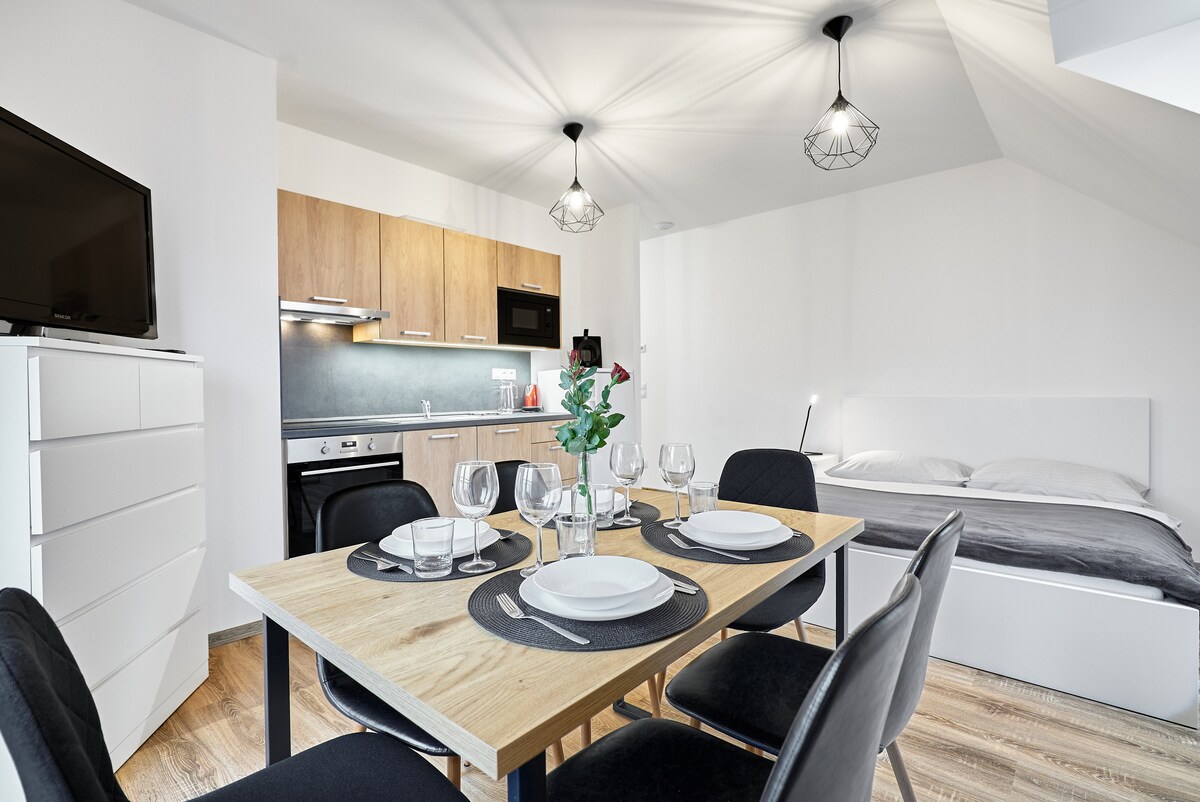 This apartment is the fusion of modern and vintage décor — true a reflection of the city's rich heritage and contemporary charm. But what truly sets this place apart is its location—it's nestled perfectly on the main street in Karlovy Vary's vibrant city center. From here, the city unfolds at your doorstep. Wander through the charming streets, or visit the city's famous spas. After a long day return to a chic blend of styles—a cozy place offering not just rest, but a retreat.