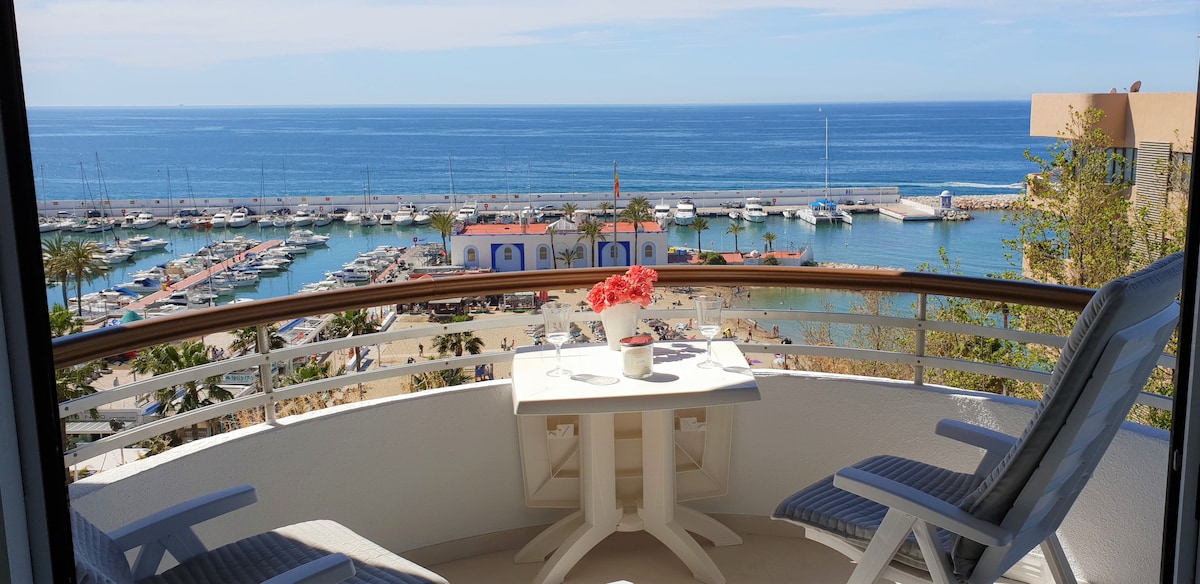 Disfruta de un espléndido apartamento en primera línea de playa en el centro de Marbella. Perfecto para familias. Las vistas son fantásticas, frontales al mar: desde donde podrás ver el Peñón de Gibraltar e incluso África. Estarás a unos pasos de poder bañarte en la playa y a escasos 5 minutos a pie del encantador casco antiguo, la Alameda de Hércules, zonas verdes y parques infantiles. Ambientado en una zona de amplia oferta gastronómica y todo tipo de comercios. ¡Sean bienvenid@s!