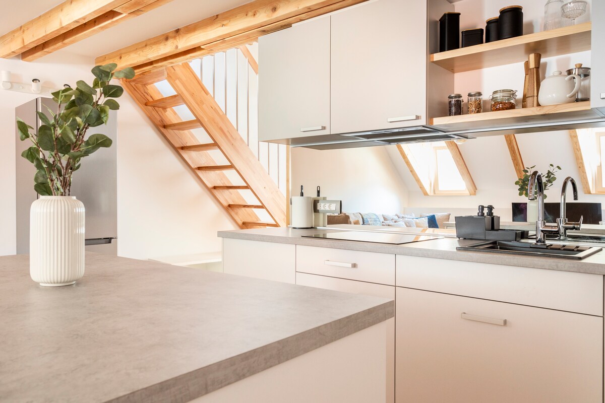 Un hermoso apartamento loft en el centro de la plaza, con una rica historia... en el pasado, había una posada que albergaba a personas de cerca y de lejos... y ahora hemos dado su vida de nuevo. Intentamos que nuestros huéspedes se sientan bien al tomarse el tiempo para sí mismos y disfrutar con nosotros. Así que ahora hemos agregado una sauna finlandesa a la oferta, que es una gran relajación para el cuerpo y el espíritu. Visítenos, no te arrepentirás