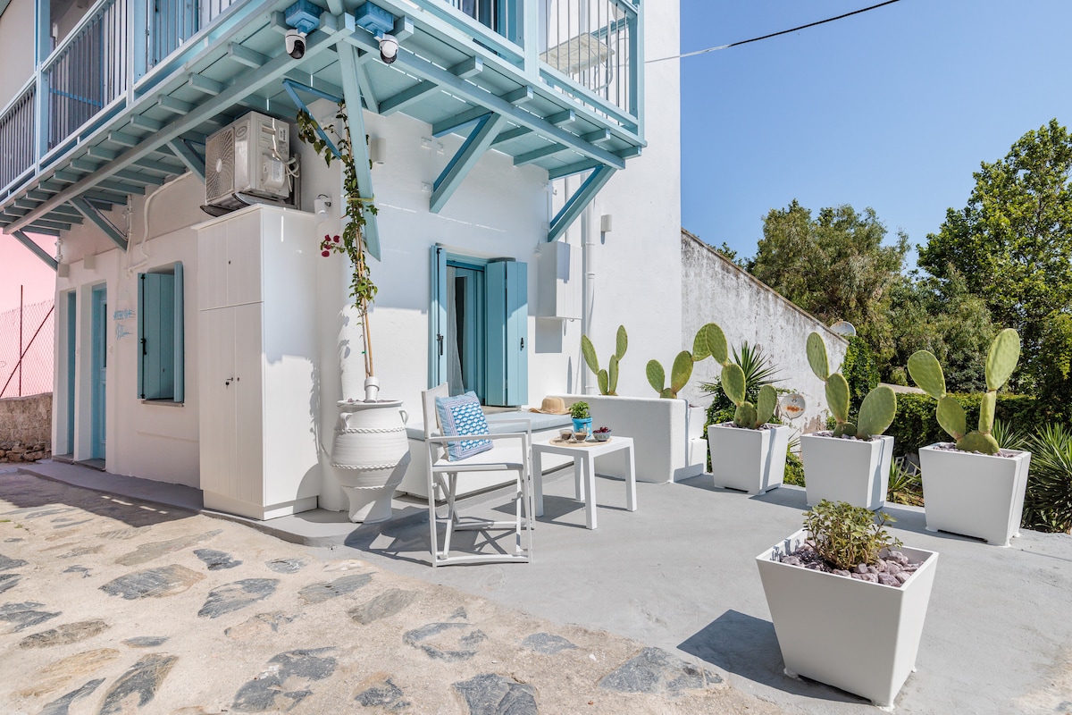 Relájate en esta tranquila y pintoresca casita de 28 m2, ubicada en un jardín secreto con ducha exterior, a 3 minutos a pie desde el corazón de Skópelos. Tranquilo, con brisa después de un largo día de playa, tomando el sol por la mañana para tomar una buena taza de café, rodeado de naturaleza en un barrio tranquilo. Comparte la misma entrada al jardín con “Lida”, la más grande de nuestras dos casas de huéspedes (no dudes en visitar este alojamiento para una opción más espaciosa).