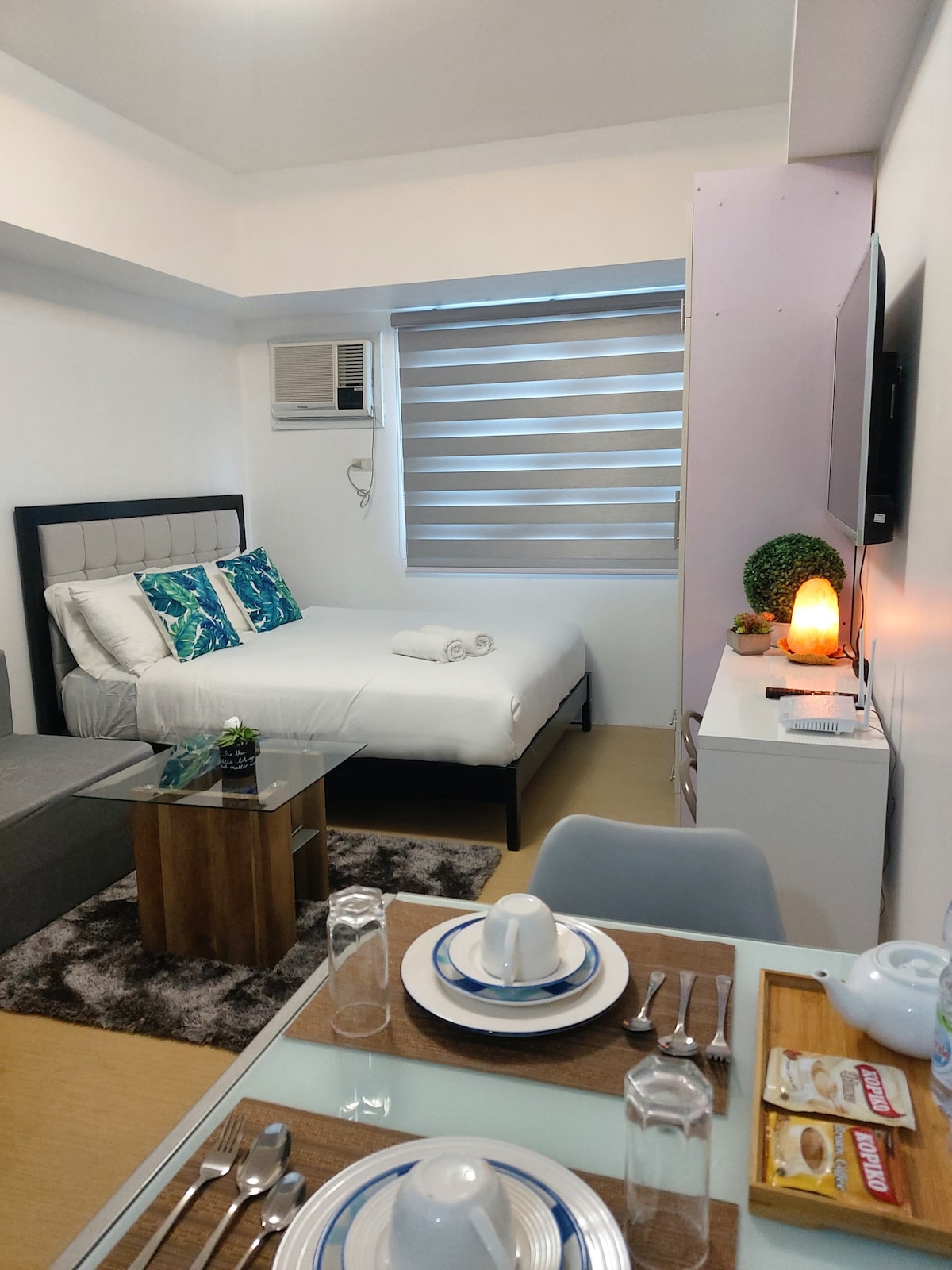 Recompénsate con unas vacaciones muy relajantes y tranquilas en la ciudad de Davao. Ubicación 📍privilegiada: One Lakeshore Condo en la parte trasera de SM Lanang cerca del Park Inn Hotel. Vista 🌞relajante: vista del monte Apo 🗻 🛏️Comodidad: Cama para 2 personas, con sofá cama adicional. Con baño Comfort limpio. Y una cocina pequeña con mininevera, cafetera, tostadora, TV y wifi gratuito. 🤝 Lo mejor para todos: negocios, seminarios u ocio. 👫 Bueno para 2-3 personas (máx. 4 personas, añadir 300 PHP) 🚐 Alquiler de furgonetas para recogida y traslado en el aeropuerto