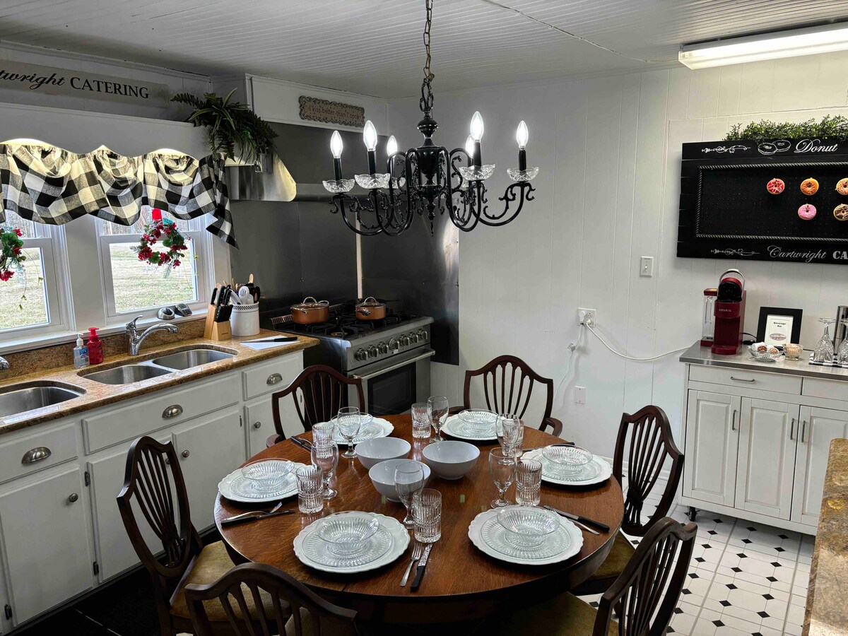 La casa de campo francesa está ubicada en la estructura original de Cartwright Catering y se encuentra en una granja centenaria de 200 acres. Se encuentra en un hermoso valle rodeado de colinas, pastos y bosques. Es un lugar fantástico para relajarse y desconectar. Internet de fibra óptica de alta velocidad/Wi-Fi y actividades al aire libre. El lago Cordell Hull está a solo 5 minutos. Disfruta cocinando en la cocina de catering en la cocina de gas profesional Thor de 36 pulgadas o en la parrilla de gas al aire libre. Decorado con antigüedades.