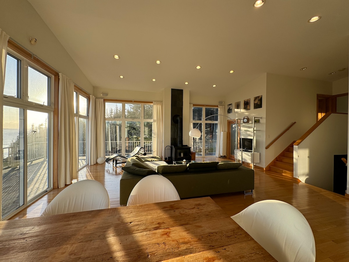 El santuario se encuentra frente al mar con vistas de 180° en las 4 estaciones. Sumérgete en el calor en la sauna de barril. Kayak en las islas en la entrada del océano, cocina en la cocina de barbacoa al aire libre. Contempla un cielo lleno de estrellas en la bañera de hidromasaje o en la terraza de la azotea, nada, patina, observa las focas tomar el sol en el banco de arena, ¡este es tu destino de relajación! ¡4 estaciones de las mejores obras de arte de la naturaleza! Aquí, tu decisión más difícil será tomar tu café en el columpio del porche o en la azotea, mientras los pájaros cantan y las águilas se elevan.