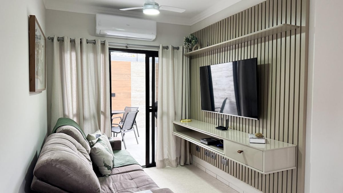 ¡Siéntete como si estuvieras en tu casa de playa! Apartamento bien decorado y muy bien equipado, con aire acondicionado frío y caliente en los dos dormitorios (01 suite), sala y suite con TV, internet de alta velocidad, Netflix, HBO, Wi-Fi. Su familia estará cerca de todo, excelente ubicación: 2 hipermercados, 3 farmacias, restaurantes, Burger King y feria libre, Praia da Enseada a una cuadra. Posible Self Check in, *traer ropa de cama y toallas.