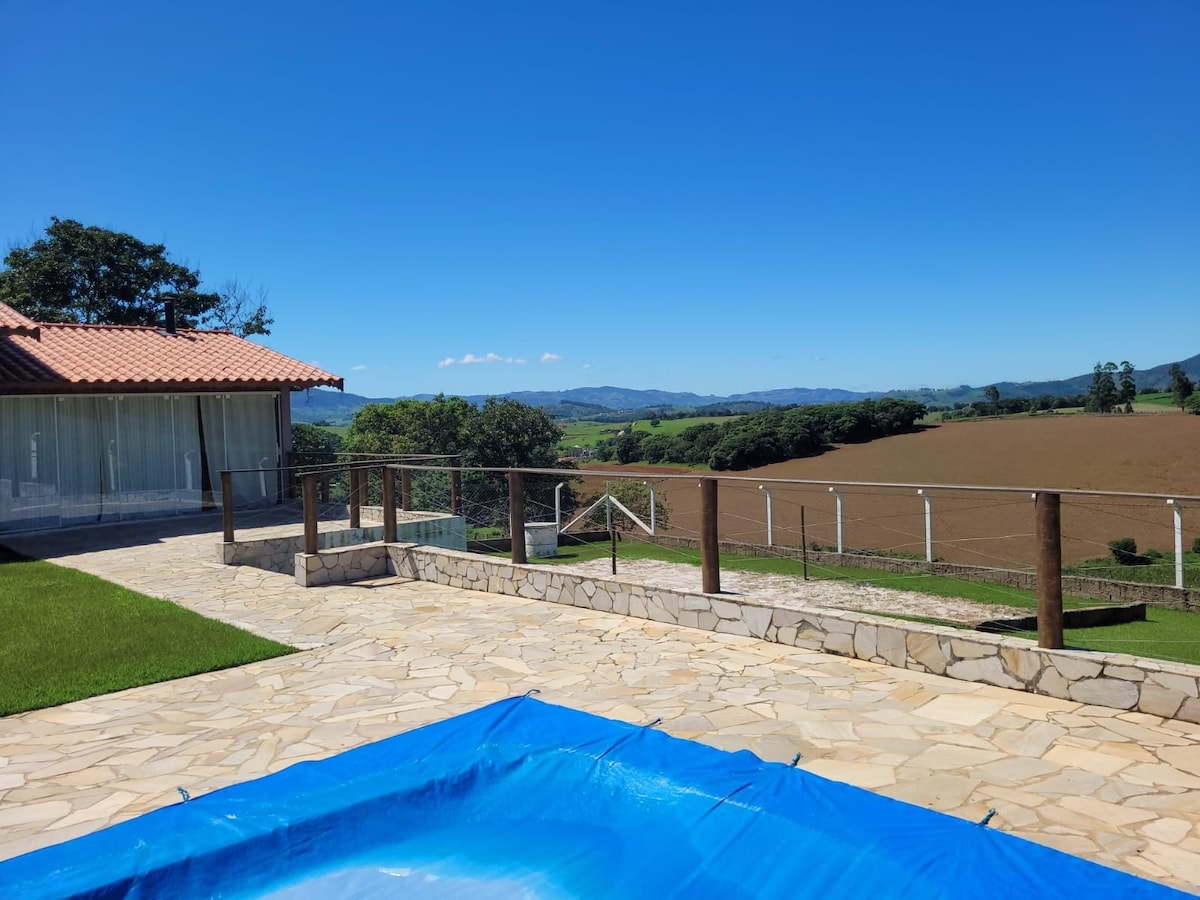 Tenga una experiencia unica de vivir en un espacio tranquilo y lleno de estilo. Disfrute de nuestra area gourmet con parrilla y fogón de leña, con una vista maravillosa para el vale y muy acessible, estamos ubicados entre varios destinos turísticos como las ciudades de Socorro, Serra Negra, cerca también de Lindóia, Águas de Lindóia y Monte Sião. Venga curtir la experiência de vivir en el campo con tranquilidad y rica naturaleza.