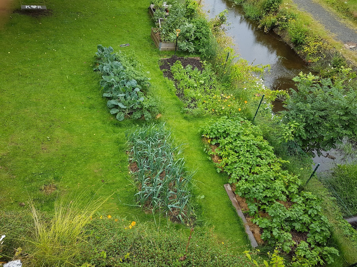 Recarga las pilas de tus pilas en este alojamiento único y tranquilo. Vives en medio de la naturaleza, con bosques, cantos de pájaros y una gran diversidad botánica. Desde el grifo, puedes beber agua de manantial que tiene un sabor bueno y fresco. Puedes disfrutar de un gran jardín y recoger tu propia ensalada y hierbas para el desayuno. El lugar tiene varias zonas de estar al aire libre, como una zona de barbacoa/chimenea y pérgola. En la parcela, se puede ver un aserradero y una casa de molino del siglo XIX que funcionaba con energía hidroeléctrica. A 1 km del apartamento hay agua dulce con canoa, pesca, zona de baño y cobertizo.