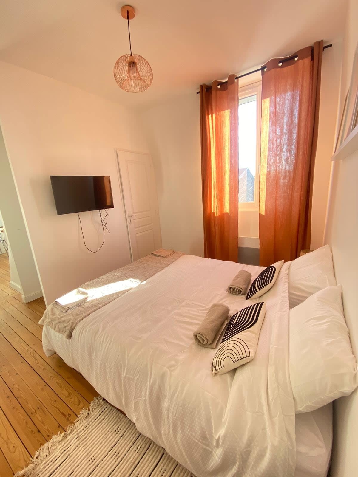 «Elegante apartamento en la planta baja, idealmente situado en el corazón de Hauts-de-France. Luminoso y moderno, ofrece todas las comodidades necesarias: wifi rápido, cocina equipada y cama mullida. Cerca de tiendas, restaurantes y atracciones. Perfecto para parejas, familias, personas que viajan solas o profesionales. ¡Reserva ahora para una estancia inolvidable!