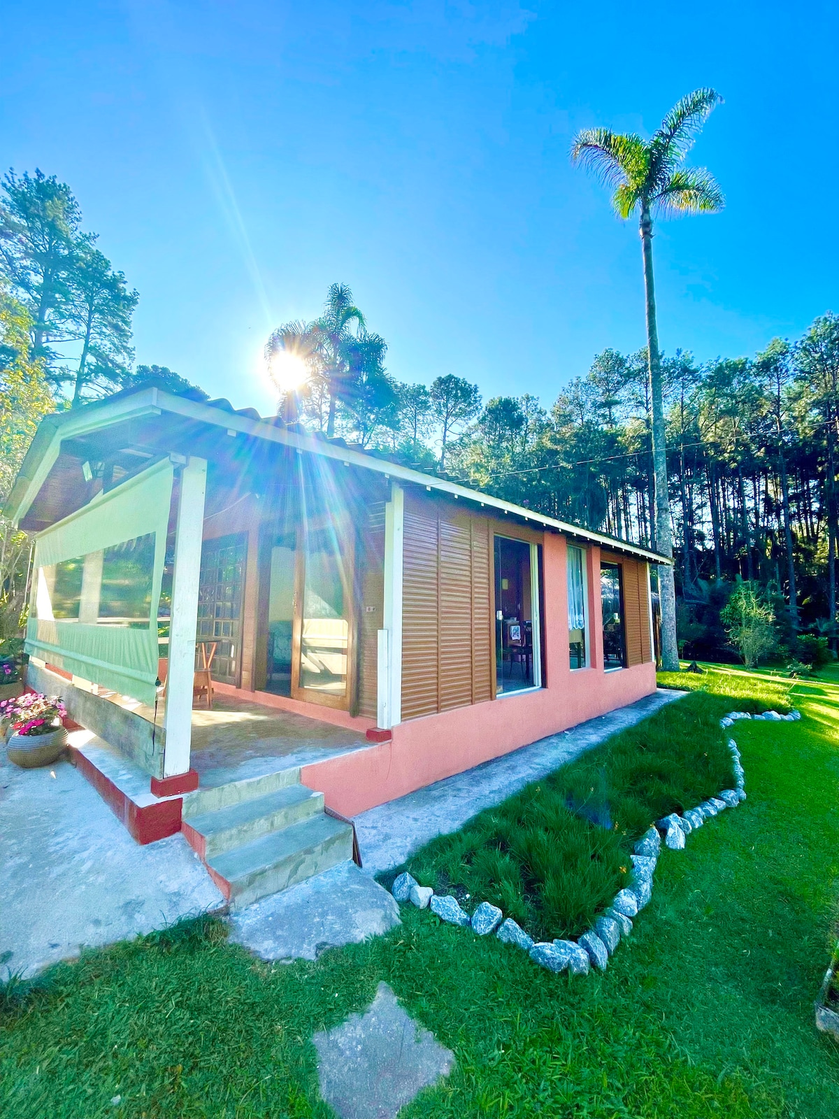 Relájate en este lugar único y silencioso. Chalet iluminado con vistas panorámicas al bosque. Lago dentro de la propiedad. La cocina bien equipada. Cortinas opacas y aire acondicionado. Se puede hacer oficina en casa con un buen wifi. Los huéspedes pueden relajarse en la hamaca junto al lago o incluso dar un paseo en barco. Tenemos una piscina compartida. Ideal para quienes necesitan escapar de la ciudad y relajarse. Ver más en IG @chale_nolago Pps: Tenemos un total de 2 alojamientos en Airbnb en la propiedad. Espacios externos compartidos
