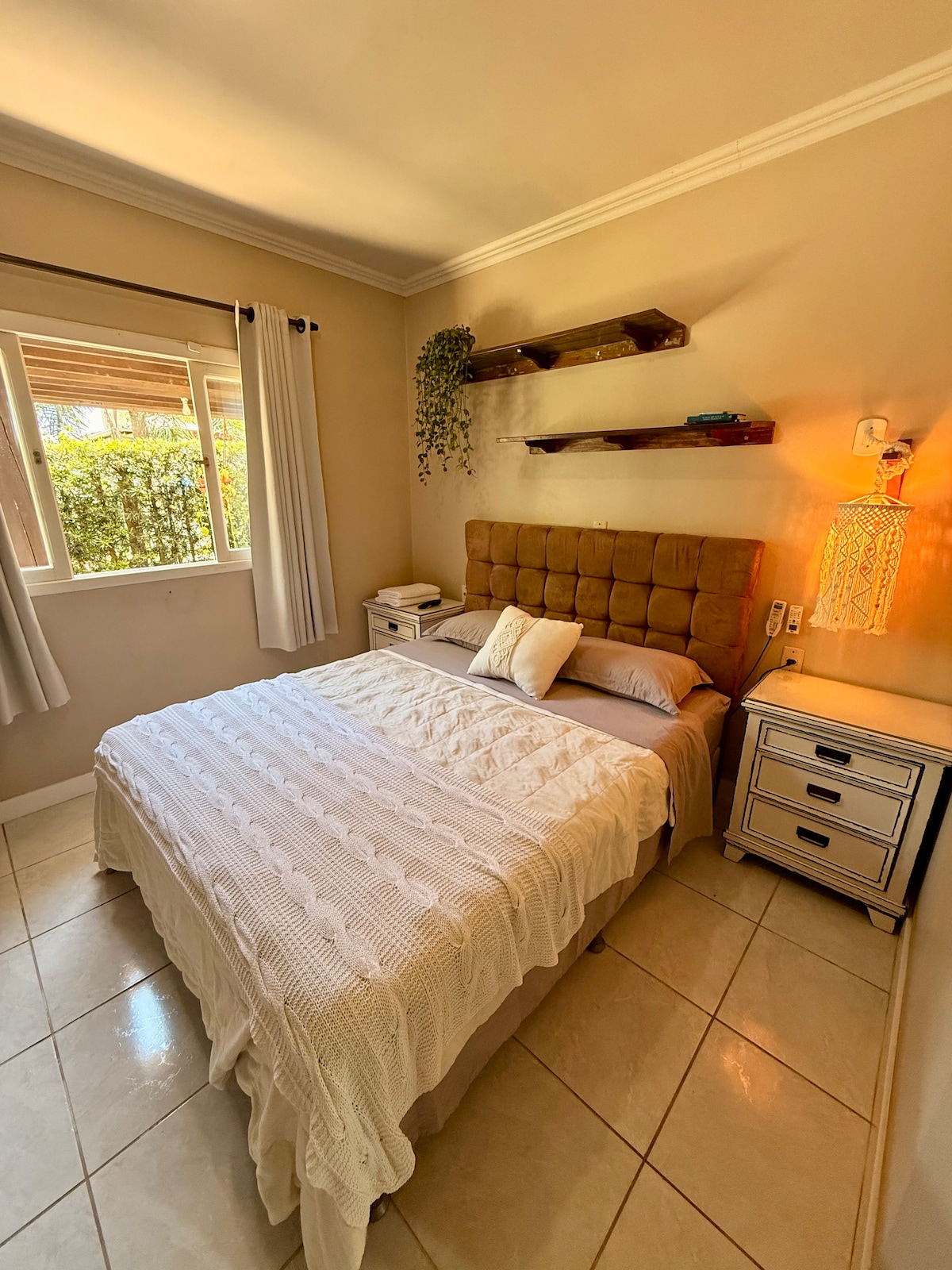 Relájate en este espacio tranquilo y elegante. En nuestra casa adosada, ubicada en el barrio más verde de Balneário Gaivota, puedes despertarte con el canto de los pájaros, disfrutar del acogedor espacio que hemos preparado, bien decorado y equipado, así como descansar en una hamaca, en el balcón de una de las suites, tomar el sol o socializar en la terraza del jardín, disfrutando de una buena barbacoa. La playa está a solo dos cuadras, a menos de cinco minutos de un buen paseo.