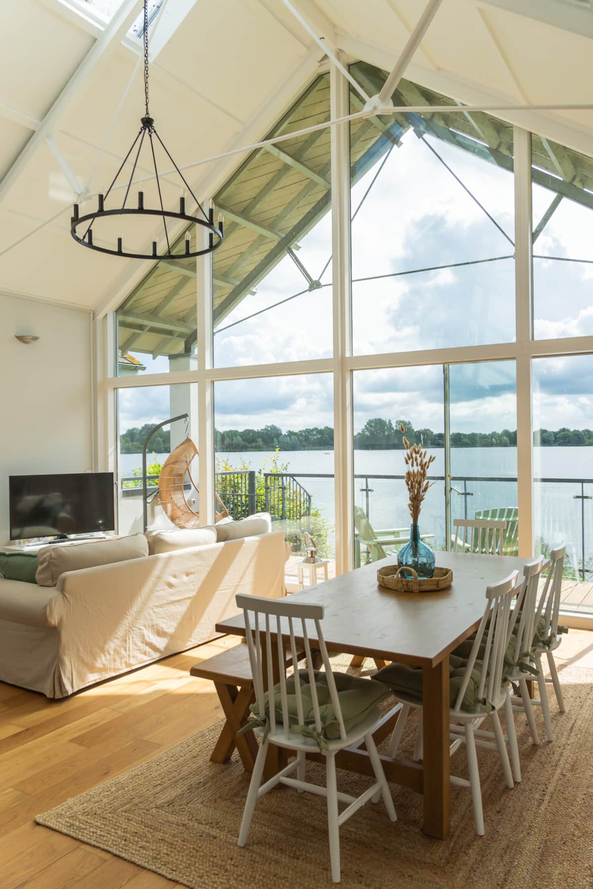 Enjoy tranquil lake views through glass-fronted windows, spanning ground and first floors of this fantastic family holiday rental. Located on the shoreline of the picturesque Somerford Lagoon within Cotswold’s Lower Mill Estate, this spacious property offers direct lake access for those wishing to enjoy paddle boarding or canoeing (April to Sept). Also included are facilities at the Spa, tennis, nature walks, as well as a great base for exploring the beautiful surrounding area.
