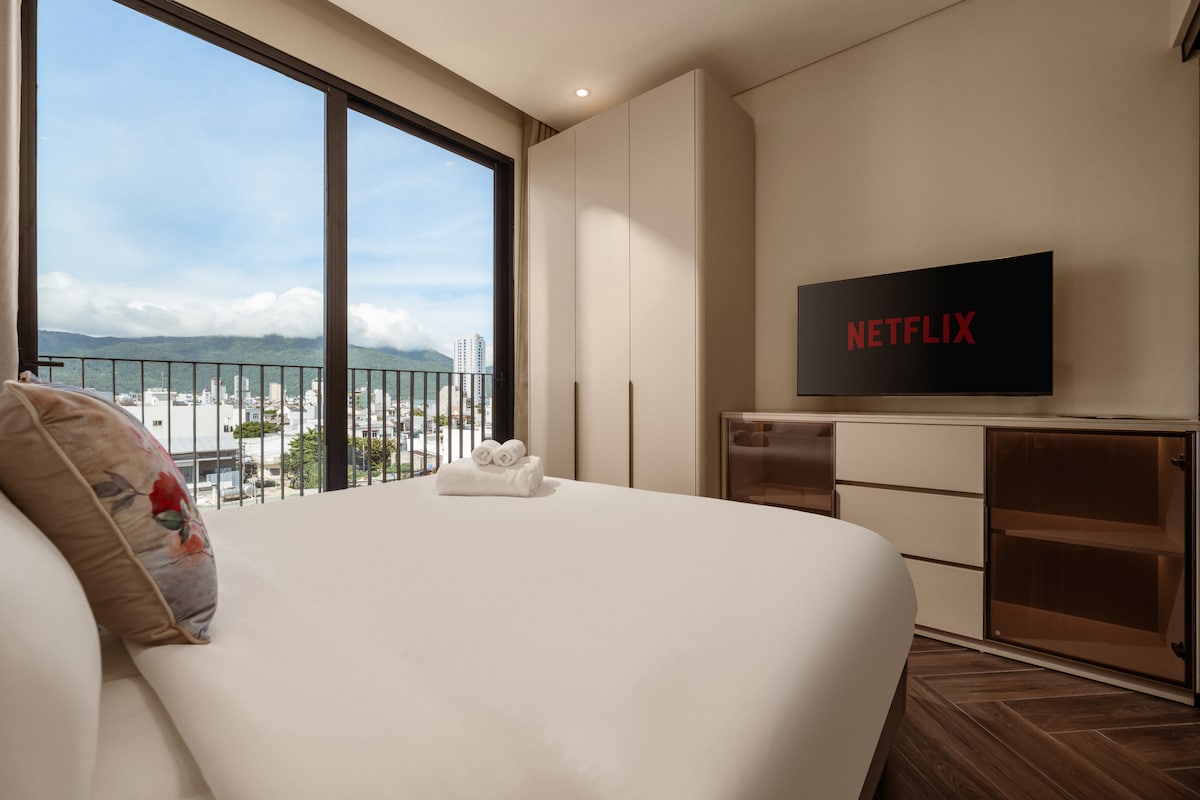 Acogedora habitación con enormes ventanales y vistas a un hotel de lujo. - A 150 metros de la playa de My Khe, la playa votada por Forbes como la más atractiva del planeta. - A 2 km del puente Dragon, el puente del río Han, ubicado en la zona turística más concurrida de Da Nang - An Thuong, por lo que está cerca de famosos lugares de entretenimiento y restaurantes, muy cómodo para que puedas explorar la ciudad de Da Nang. - Situado en una calle lejos de la carretera principal, por lo que es muy tranquilo para que duermas bien. - Piscina exterior y gimnasio en la planta superior.