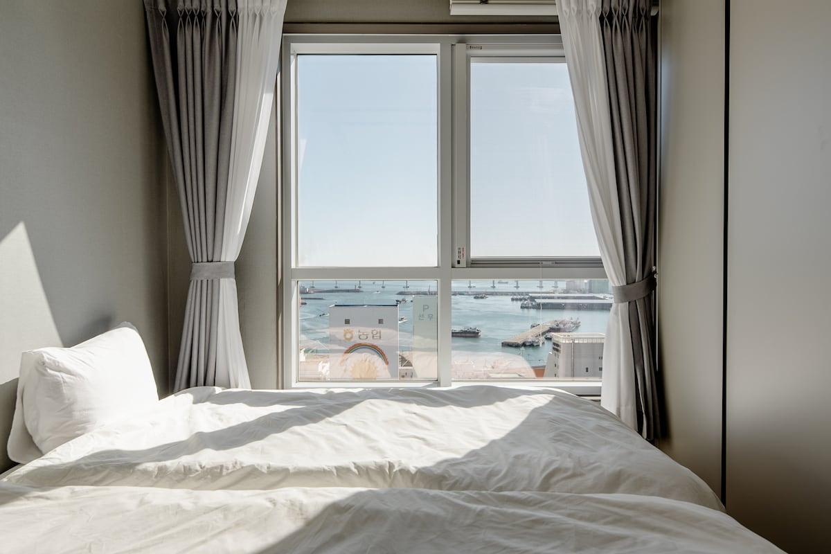 Esta habitación se encuentra justo enfrente de la salida 3 de la estación de autobuses de Busan Jagalchi. Hay una cama tamaño queen instalada y puedes disfrutar del hermoso puente Bukhang y de las vistas al mar desde la habitación. Tiene la mejor vista de todas las vistas al mar despejado por la mañana. Las principales atracciones turísticas de Busan, como Beef Square, el mercado de Kkangtong y el mercado de Jagalchi, están a poca distancia a pie, lo que facilita los desplazamientos. Los alrededores están bien equipados con varios servicios, como tiendas de comestibles, cafeterías, restaurantes y farmacias. La conexión wifi de alta velocidad gratuita y los guardias de seguridad las 24 horas te ayudan a mantenerte seguro, y todas las áreas son para no fumadores para mantener un ambiente agradable. Equipado con nevera, lavadora, smart TV, etc., es adecuado para estancias largas. Se proporciona ropa de cama y limpieza de habitaciones para estancias de 3 noches o más, y garantizamos un viaje cómodo y seguro con check-in sin contacto y comunicación por mensaje de texto. * Importante: No hay aparcamiento privado en este edificio, así que asegúrate de utilizar el aparcamiento privado (aparcamiento JS, etc.), que está a 5 minutos a pie.