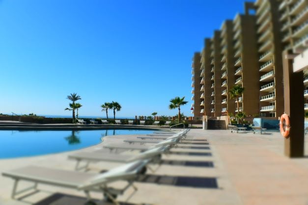 Playa blanca condo-hotel es un lugar exclusivo frente a la playa y con una vista espectacular del Mar de Cortez. El condominio se encuentra en el piso 10 con vista a la piscina y al mar. Se cuenta con un reglamento para garantizar una sana convivencia durante su estancia. Contamos con gimnasio, alberca, 4 jacuzzis en área común, jardines, 2 asadores, camastros, Terrazas comunes, bar, tienda en la planta baja, cancha de tenis, y amplió estacionamiento.