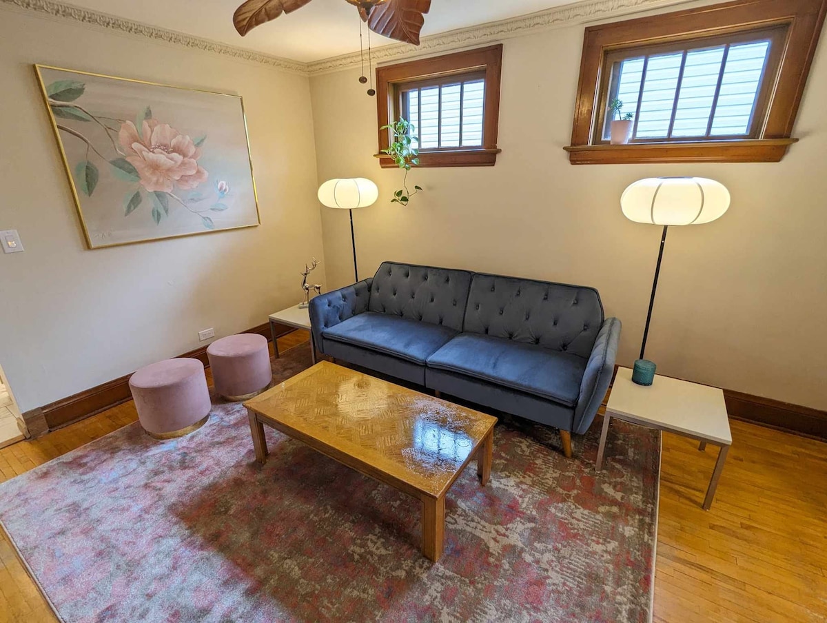 ¡Te damos la bienvenida a nuestra espaciosa y lujosa suite en el sótano! Disfruta de un dormitorio con camas tamaño king y queen, además de un futón, una acogedora sala de estar con sofá y sillón reclinable, y una gran ducha. Tendrás una cocina completa, bar, estacionamiento, wifi, TV Firestick, café y toallas. Perfecta para viajes de negocios o de placer, nuestra suite garantiza una estancia agradable.