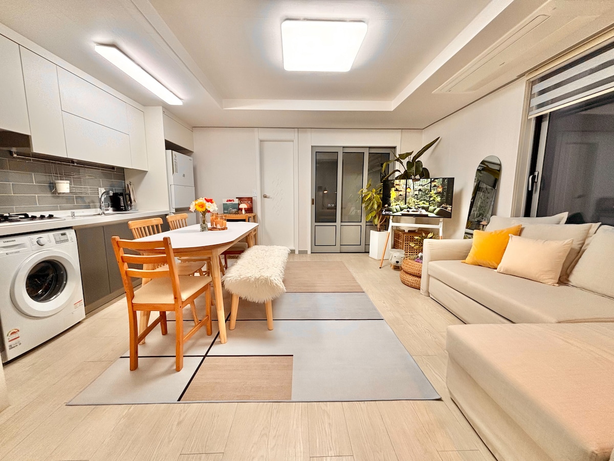 #10 personas#20 pyeong#Estacionamiento gratuito#Almacenamiento de equipaje gratuito#Tres habitaciones#5 camas queen#6 minutos del metro#8 minutos del autobús del aeropuerto#Modelo Olly