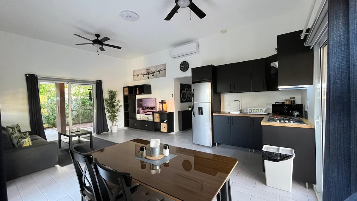 1 / 1 Las estancias de 7 días o más recibirán recogida gratuita en el aeropuerto, envíame un mensaje. Condominio privado de 1 habitación con piscina compartida, lavandería y un espacio de estacionamiento, a poca distancia a pie de un supermercado y a pocos minutos del centro y de las playas. La vivienda cuenta con un espacio de trabajo ideal para el teletrabajo, mientras que el balcón ofrece cómodos asientos. La cocina está equipada con todo lo necesario para cocinar y la sala de estar dispone de un televisor inteligente. Dos aires acondicionados. La electricidad no está incluida, los huéspedes reciben un crédito de 15 $ para viajes de 2 a 5 días.