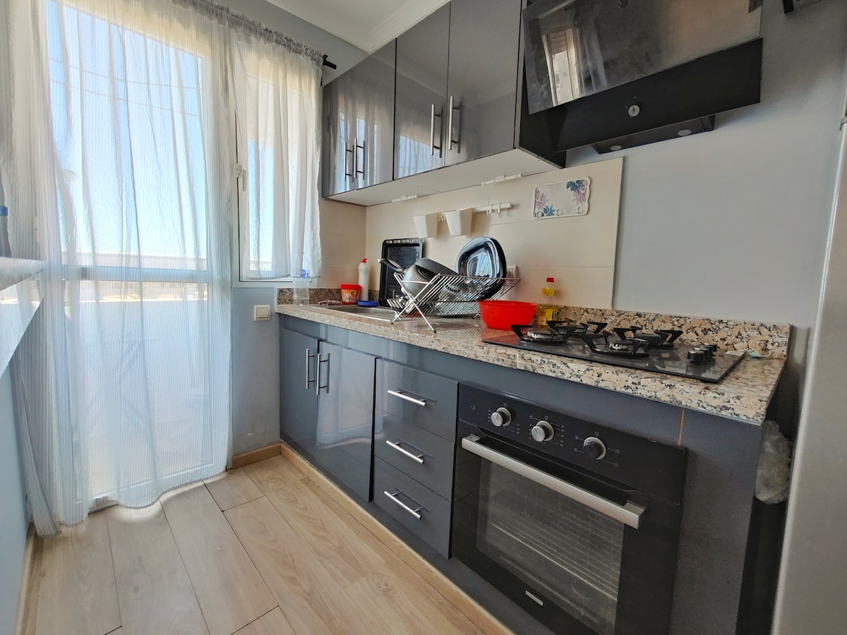 Acogedor estudio con vista al mar, cerca de la playa, tranquilo y moderno