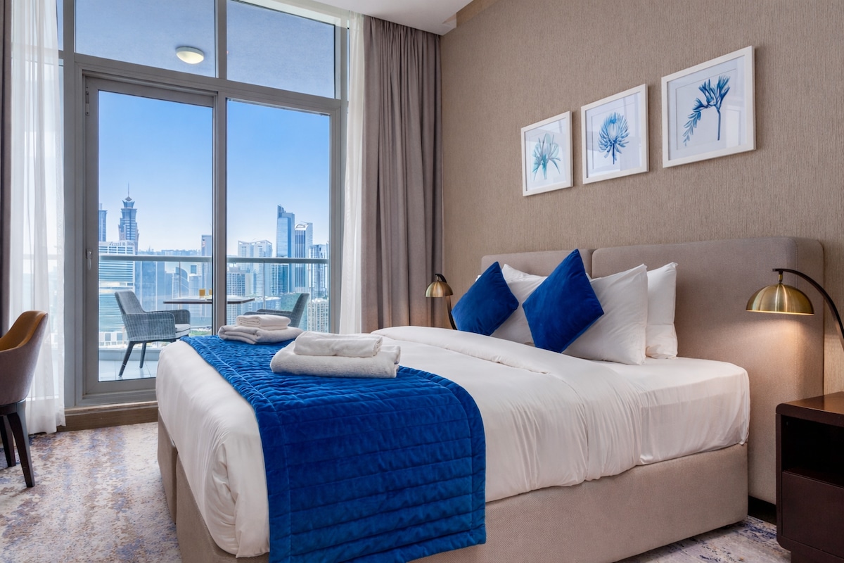 Tranquilidad en el interior. Aventuras en la ciudad al aire libre. ¡Descubra ambos alojándose en este hermoso estudio ubicado en Business Bay! ¡Déjese mimar como si estuviera en un hotel de 5estrellas con increíbles servicios disponibles para usted como sábanas y toallas de primera calidad, piscina, electrodomésticos y más! ¡Perfecto para familias pequeñas, amigos o viajeros de negocios! ¡Esperamos que disfrutes de tu estancia en Dubái!