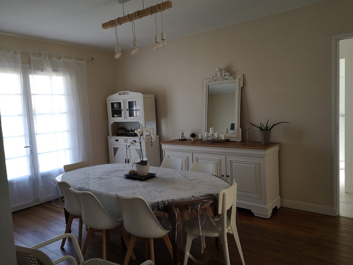Relájese en esta villa de 100 m2 cómoda y elegante - Clasificada 4 estrellas "Étoiles de France". En el centro de viñedos y los vinos más grandes del mundo. El océano a 15 minutos en más de 30 km de playa. Totalmente renovada, cálida, luminosa; esta encantadora villa le ofrece una hermosa sala de estar de 45 m2, chimenea con inserción, cocina, 2 hermosas habitaciones con camas queen size, 1 dormitorio con literas, 1 baño, ducha a ras de suelo, 1 terraza, 1 barbacoa, 1 gran jardín .