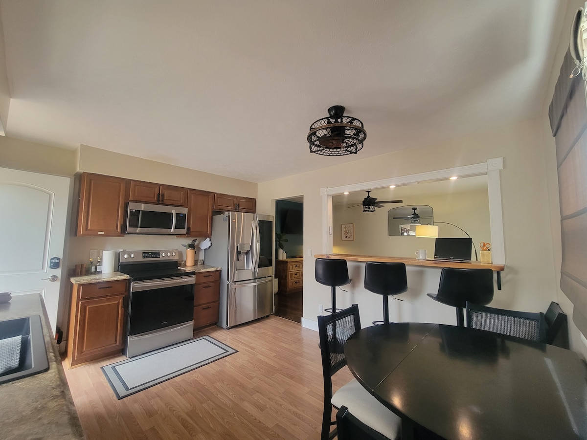 Welcome to your cozy home away from home—perfect for families, business travelers, and weekend getaways. 🛋️ Relax in Comfort Unwind on the spacious sectional. Perfect for movie nights, conversation, or kicking back. 💻 Work-Friendly Setup Stay productive with fast WiFi. 🍳 Fully Equipped Kitchen Enjoy a clean, functional kitchen with everything you need to cook and enjoy your morning coffee. 🛏️ Rest Easy Comfortable beds and a quiet area ensure a great night’s sleep. 🐕🦺 Pets Welcome!