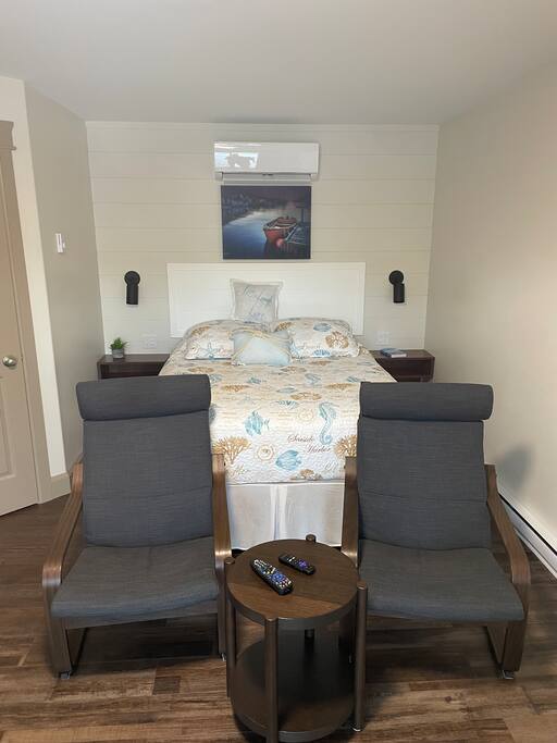 Esta pintoresca y acogedora suite está convenientemente ubicada en el corazón de Bishop's Falls. Margie's Place está totalmente amueblado y consta de 2 dormitorios, 1 baño, cocina totalmente equipada, chimenea eléctrica, entrada privada y aparcamiento. A pocos minutos de rutas de senderismo/caminata y acceso rápido al río Exploits para pescar salmones, hacer kayak y piragüismo, así como fácil acceso a rutas de todoterreno/motos de nieve. Estamos a solo 10 minutos en coche de Grand Falls-Windsor, un hogar perfecto para cualquier estancia médica o de compras.