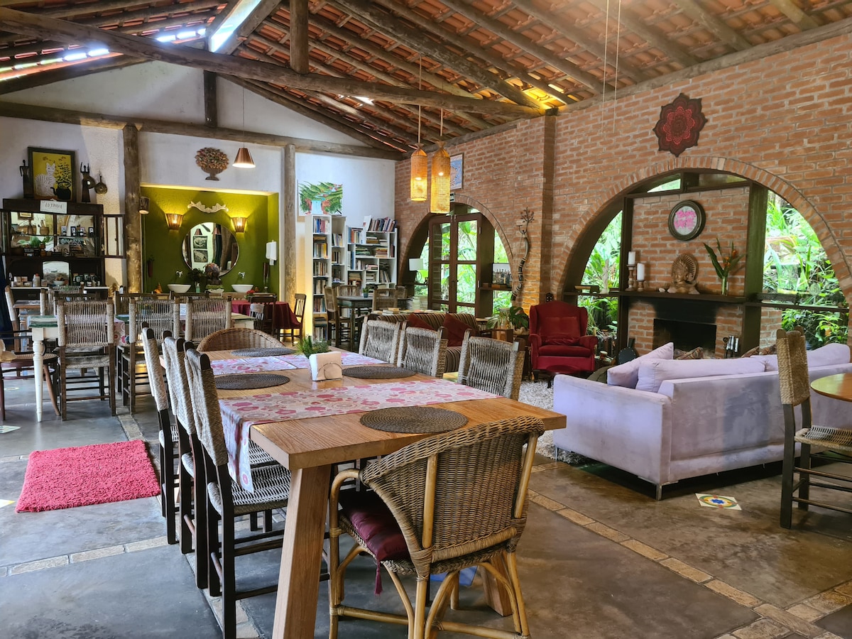 Alojamento em meio à reserva particular de Mata Atlântica. O local é todo feito em bioconstrução, silencioso e aconchegante, não possui iluminação elétrica e nem tomadas, perfeito para se desconectar e relaxar, além de aproveitar os sons da natureza e as estrelas no céu noturno. A hospedagem inclui cozinha comunitária com todos itens básicos e banheiro com chuveiros quentes. Há também piscina natural (pequeno lago) e um salão multiuso. Acesso ao quarto requer caminhada de cinco minutos na mata.