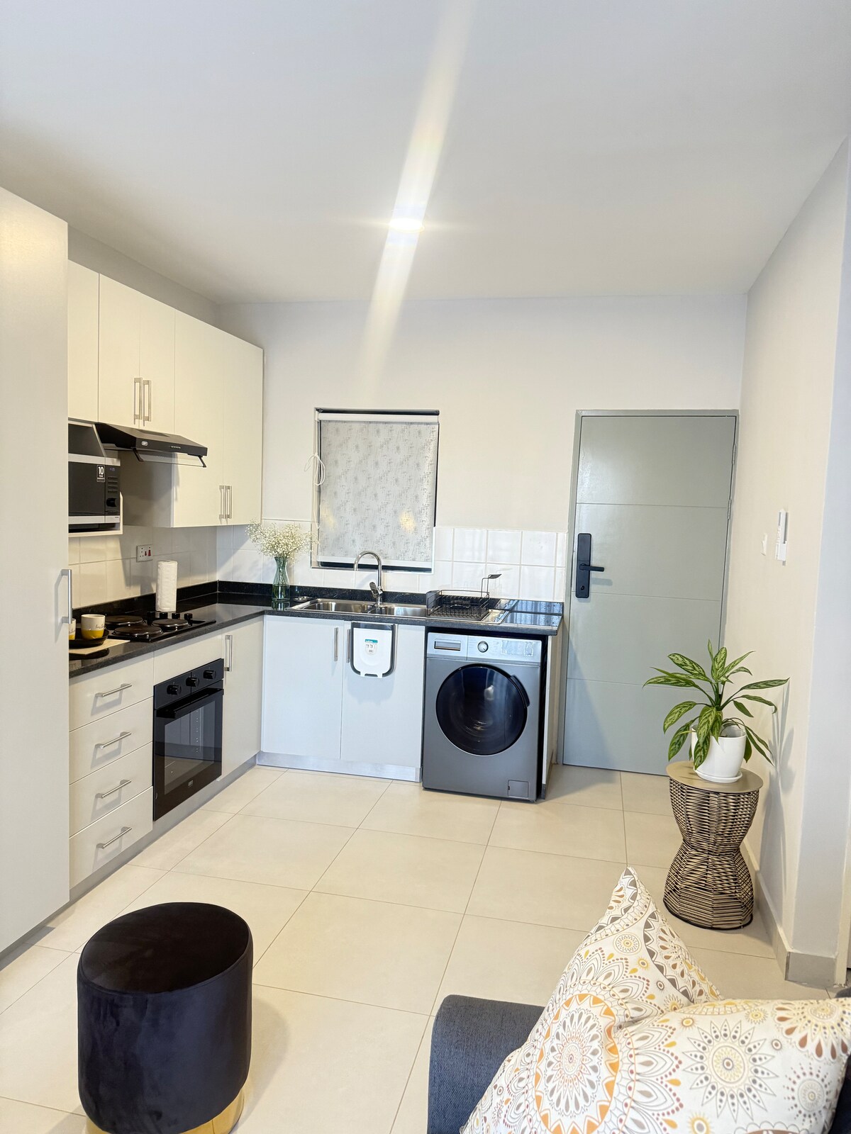 Apartamento moderno y totalmente amueblado de un dormitorio en una finca segura. Ubicado a 15 minutos del Aeropuerto Internacional Sir Seretse Khama, el apartamento también está cerca de servicios. Está a tiro de piedra de un centro comercial con una tienda de comestibles bien surtida, establecimientos de comida para llevar, una peluquería y otras tiendas. Está a menos de 10 minutos en coche del Hospital Privado de Gaborone y de la Policía y a 15 minutos del distrito financiero. Ideal para turistas, viajes de negocios y escapadas familiares. Internet de fibra rápido y fiable disponible.
