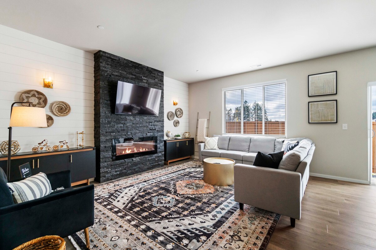 Con preciosas vistas al monte Rainer, esta acogedora casa de 5 dormitorios y 2,5 baños es el destino perfecto para una aventura en el noroeste del Pacífico. ¡3 aires acondicionados NUEVOS! Dos dormitorios tienen camas tamaño California King. Una cama tamaño queen con habitaciones grandes. Tus hijos pueden disfrutar de una acogedora sala de juegos, que incluye una zona de juegos infantil con tipi y cómodas camas individuales. ¡Ofrecemos a las mascotas un patio trasero totalmente vallado para jugar! Aprovecha la oportunidad para relajarte junto a la chimenea y disfrutar de una copa de vino o jugar a juegos de mesa con la familia durante las vacaciones.