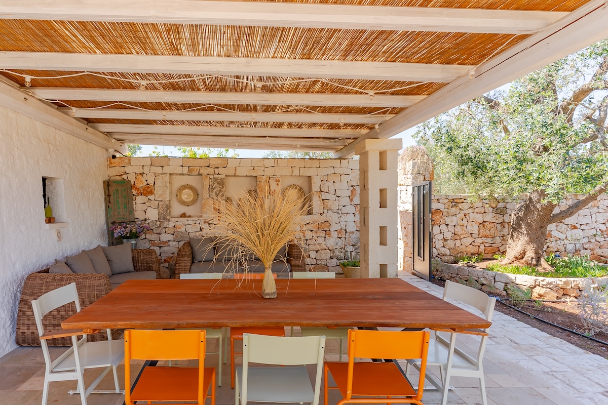 Una antigua Lamia, recientemente restaurada, situada en el campo en el famoso Valle d'Itria, entre Cisternino y Ostuni, a 25 minutos de las playas y a sólo 15 minutos de los pueblos más populares de Puglia. Experimente el encanto de alojarse en una casa de 300 años, con techos abovedados y paredes de piedra. Piérdase en el tiempo sentado en el patio contemplando el terreno de 30 mil m2 con olivos y un muro con vides centenarias. Disfrute de las noches frescas del campo tomando una copa en el jacuzzi al aire libre o preparando una barbacoa.
