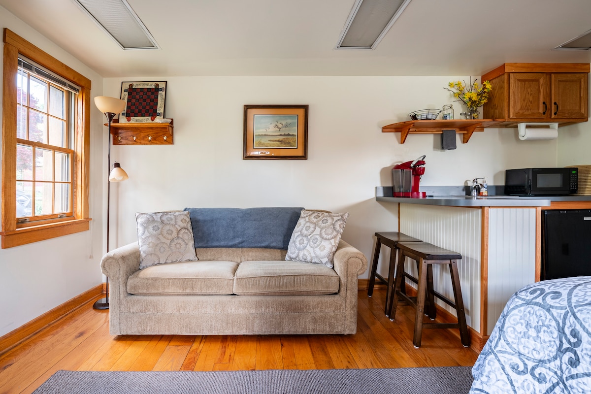 Nuestro moderno estudio está en Town Run y a pocos pasos del centro de Shepherdstown. Tanto si vienes para una escapada relajante como para una visita a la universidad, escucha una cascada desde nuestro acogedor espacio zen con jardines al aire libre. Es un oasis con una cómoda cama completa, un área de trabajo dedicada y una ducha a ras de suelo. Ubicado en el centro histórico, puedes explorar fácilmente German St., con una variedad de opciones gastronómicas, tiendas y actividades al aire libre a pocos pasos del río Potomac y el camino de remolque C&O.