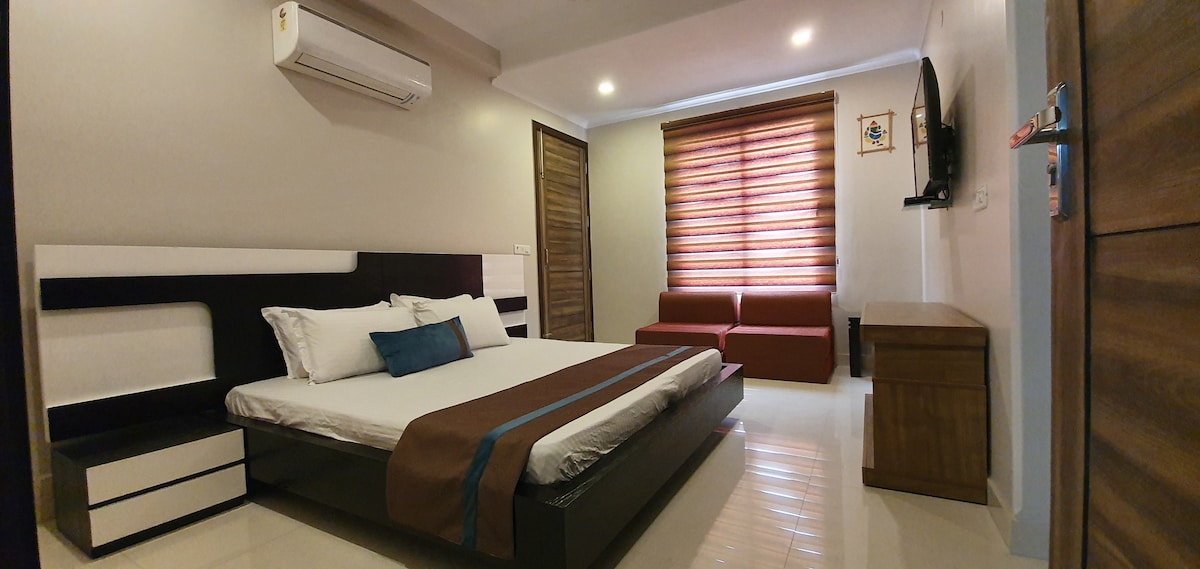 Welcome to your cozy private room in Mahavir Enclave, perfect for solo travellers, working professionals, or two guests such as married couples, siblings, or cousins. (Please note: we do not host unmarried couples.) This room is a family home but offers complete privacy, with your own: ✔ Queen bed with fresh linen ✔ Private attached bathroom ✔ Private balcony ✔ High-speed Wi-Fi ✔ Lift access ✔ Free parking for Hatchback car & bikes ✔ CCTV security in outside areas ✔ Smart TV ❌No Kitchen