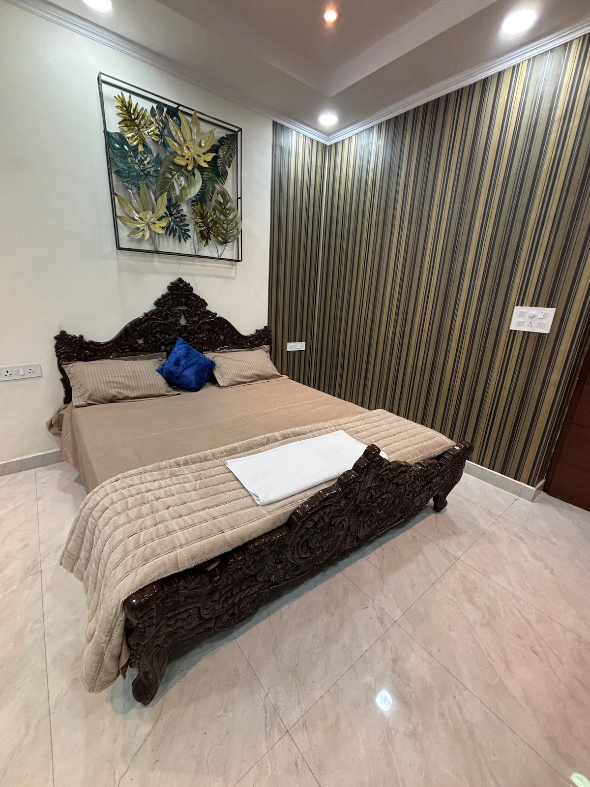 ¡Te damos la bienvenida a The BrownGrey Luxury APT! Es perfecto para una escapada de fin de semana o una estancia larga y acogedora. - Nota: La música alta y las fiestas están estrictamente prohibidas. - Las características incluyen llegada autónoma. - Cocina totalmente equipada. - 4 acogedoras habitaciones con aire acondicionado. - Internet rápido para teletrabajar. - Fácil acceso a Uber/Ola/BluSmart. - La comodidad de pedir comida a través de Swiggy/Zomato. - También hay un restaurante en el hotel. - A solo 35 minutos del aeropuerto.
