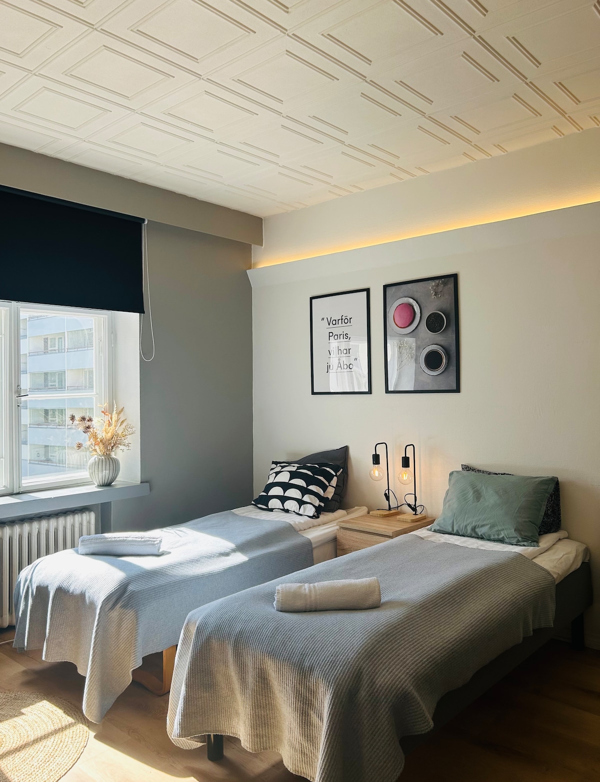 ¡Mi cónyuge y yo le damos la bienvenida a Turku! A solo 5 minutos de la estación de autobuses y con varias opciones de aparcamiento. La plaza del mercado, la catedral y la orilla del río están justo al lado, con todos sus restaurantes y cafeterías. ¡Mi pareja y yo le damos la bienvenida a una estancia encantadora en Turku! A solo 5 minutos a pie de la estación de autobuses y a 15 minutos a pie de la estación de tren. La plaza del mercado, la catedral y la orilla del río están a la vuelta de la esquina y ofrecen maravillosas cafeterías y restaurantes.