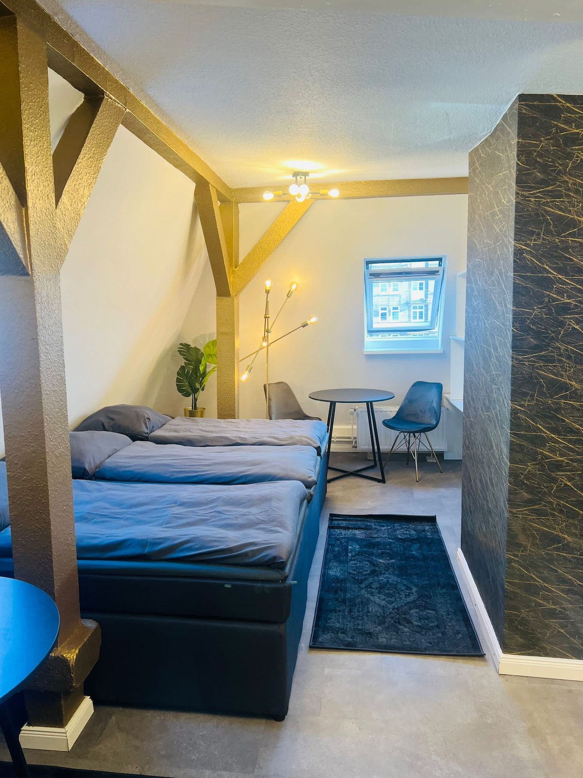 Este espacioso apartamento de estilo loft está situado en el centro, entre los populares distritos de Schanze/Altona, justo en el corazón de la acción, pero discretamente escondido en un patio verde. El dormitorio ofrece un refugio relajante, mientras que la zona de estar/trabajo/comedor con su propia estación de té/café te invita a quedarte. La gran terraza con zona de estar es un lugar maravilloso para relajarse. NOTA: La zona de entrada (sala de estar/comedor) se atraviesa al entrar y salir, y la cocina es compartida.