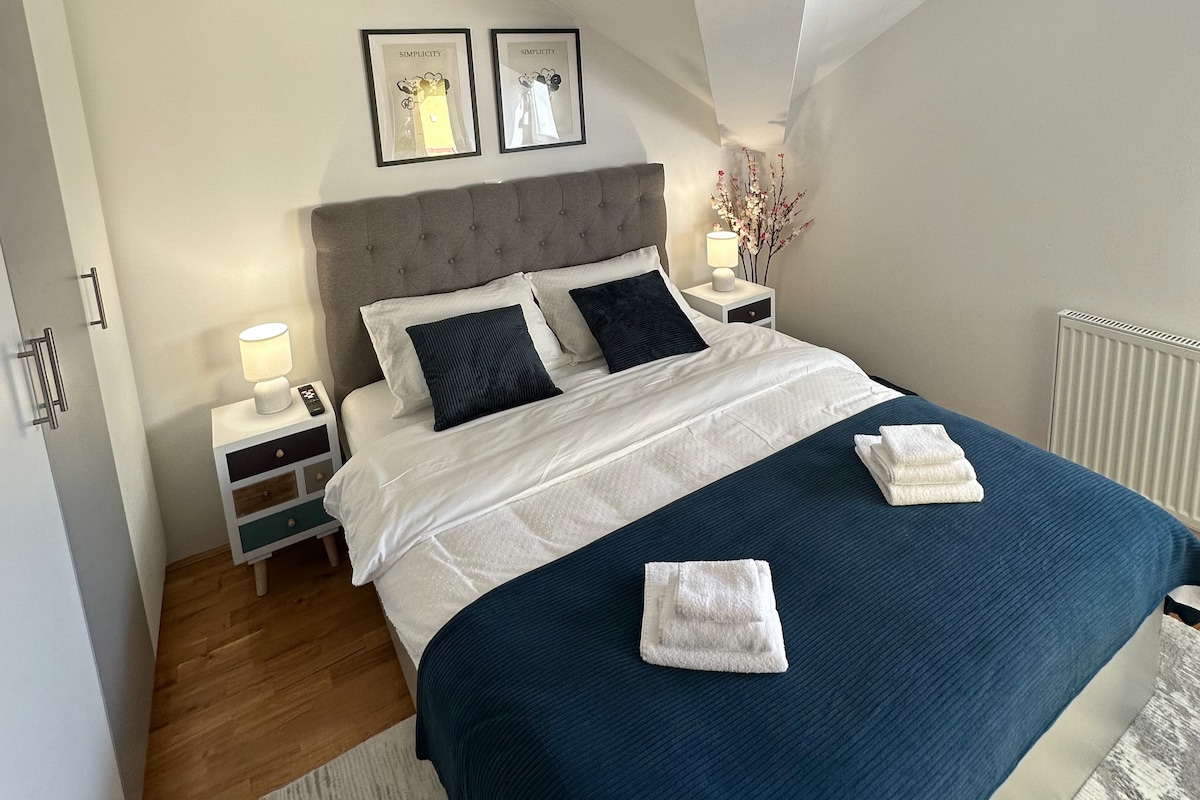 Apartamento de lujo en el centro de la ciudad de Virovitica con vistas al castillo de Pejačević y la iglesia de San Rocco. Moderno y ricamente equipado para una estancia más larga. Los huéspedes tienen acceso a Internet, televisión por cable en cada habitación, lavadora y secadora, lavavajillas, horno, nevera y otros electrodomésticos para una vida diaria más cómoda.