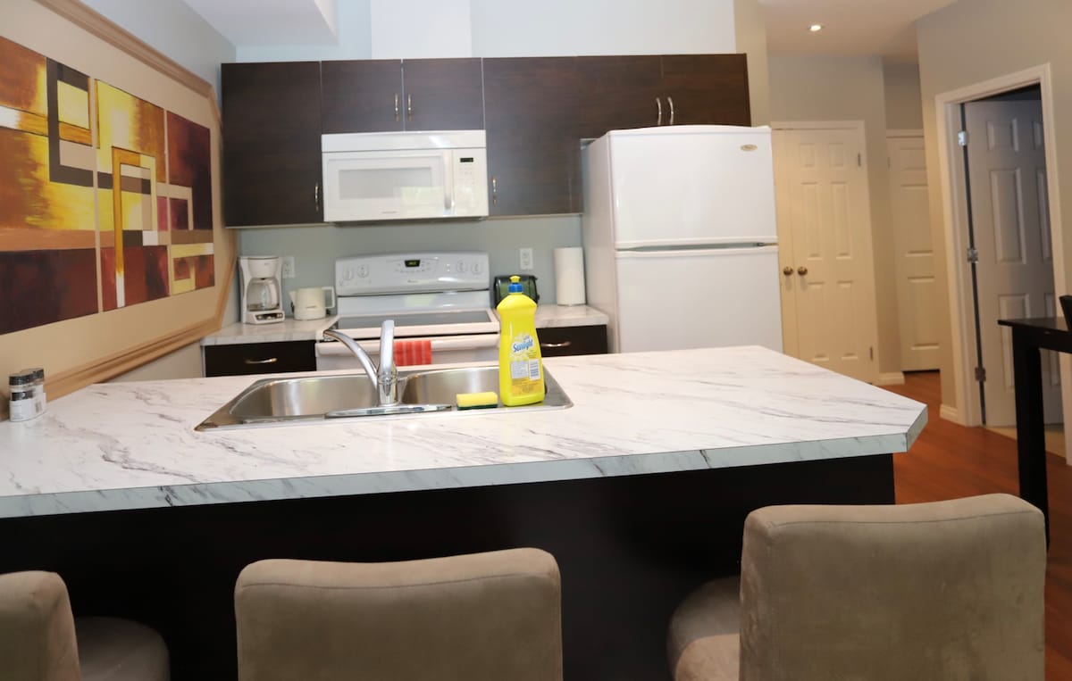 ¡Bienvenido a casa! Esta es una unidad de 1 dormitorio muy limpia y cómoda. Construido en 2015, ¡todo este apartamento tiene todas las campanas y silbatos! En el segundo piso, en un vecindario bien establecido en el noroeste de Edmonton, este alojamiento tiene capacidad para 3 huéspedes (2 en master, 1 en retirada). Aparcamiento subterráneo climatizado incluido. Convenientemente ubicado cerca de tiendas de comestibles, restaurantes, gasolineras y grandes tiendas. *No se puede hacer el registro de entrada después de las 21:00 h*