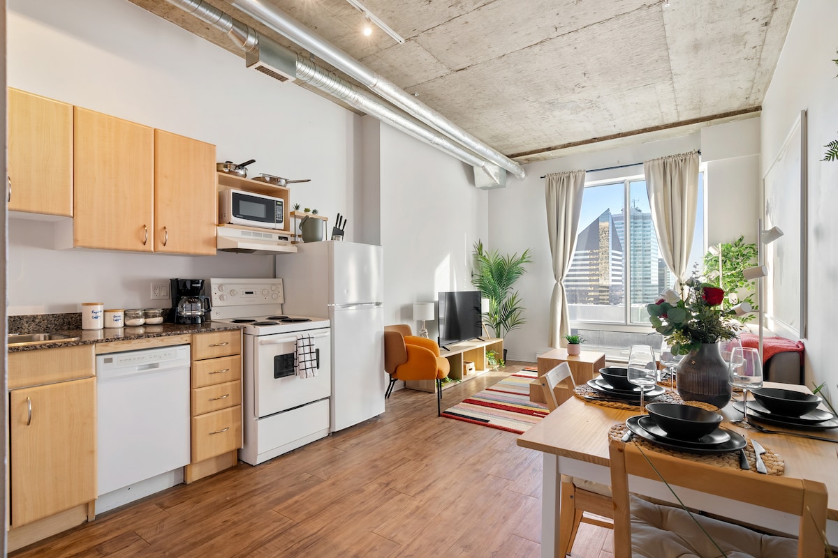 ¡Te damos la bienvenida a The London Loft en YEG! *Capacidad para 4 personas* *Mesa de billar* Somos el loft temático más popular de Airbnb en el centro de Edmonton. Te encantará la proximidad al divertido y animado Ice District de Edmonton, donde encontrarás el famoso estadio y sala de conciertos Rogers Place. A poca distancia a pie de muchos restaurantes, bares y tiendas. El mundialmente famoso West Edmonton Mall está a solo 11 km. Aire acondicionado de ventana en el salón y ventiladores de pie. Nota: ¡El apartamento es muy cálido en verano!