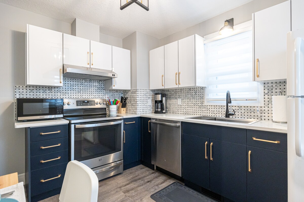 Te damos la bienvenida a nuestro RECIÉN RENOVADO alojamiento de 5 dormitorios, 2 baños, a 2 minutos en coche o a 5 minutos a pie del centro comercial West Edmonton Mall. A solo unos minutos de las famosas atracciones de la ciudad y con fácil acceso a las autopistas de Edmonton. Esta es la ubicación perfecta para aquellos que buscan una escapada de casa. Aire acondicionado para el verano. Aparcamiento privado en la entrada. Registro de entrada y salida autónomo con cerradura inteligente. Disfruta de servicios de streaming y cable. Wifi de alta velocidad. Limpiado y desinfectado profesionalmente