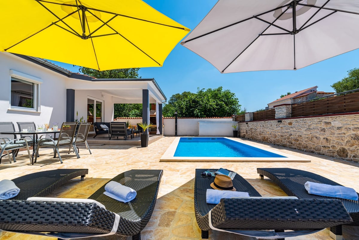 Esta hermosa villa con piscina climatizada, bañera de hidromasaje y sauna se encuentra en un paisaje remoto y aislado con una vista impresionante del valle. Piscina climatizada de abril a noviembre ¡Un lugar ideal para relajarse y un punto de partida para explorar la región y Croacia! Distancia a la ciudad Zadar está a 28 km (aeropuerto a 20 km) de distancia. Šibenik está a 50 km de distancia. Split está a 125 km (aeropuerto a 99 km) de distancia. Distancia a la atracción Lagos de Plitvice a 125 km. Krka a 45 km de distancia Kornati a 30 km de distancia