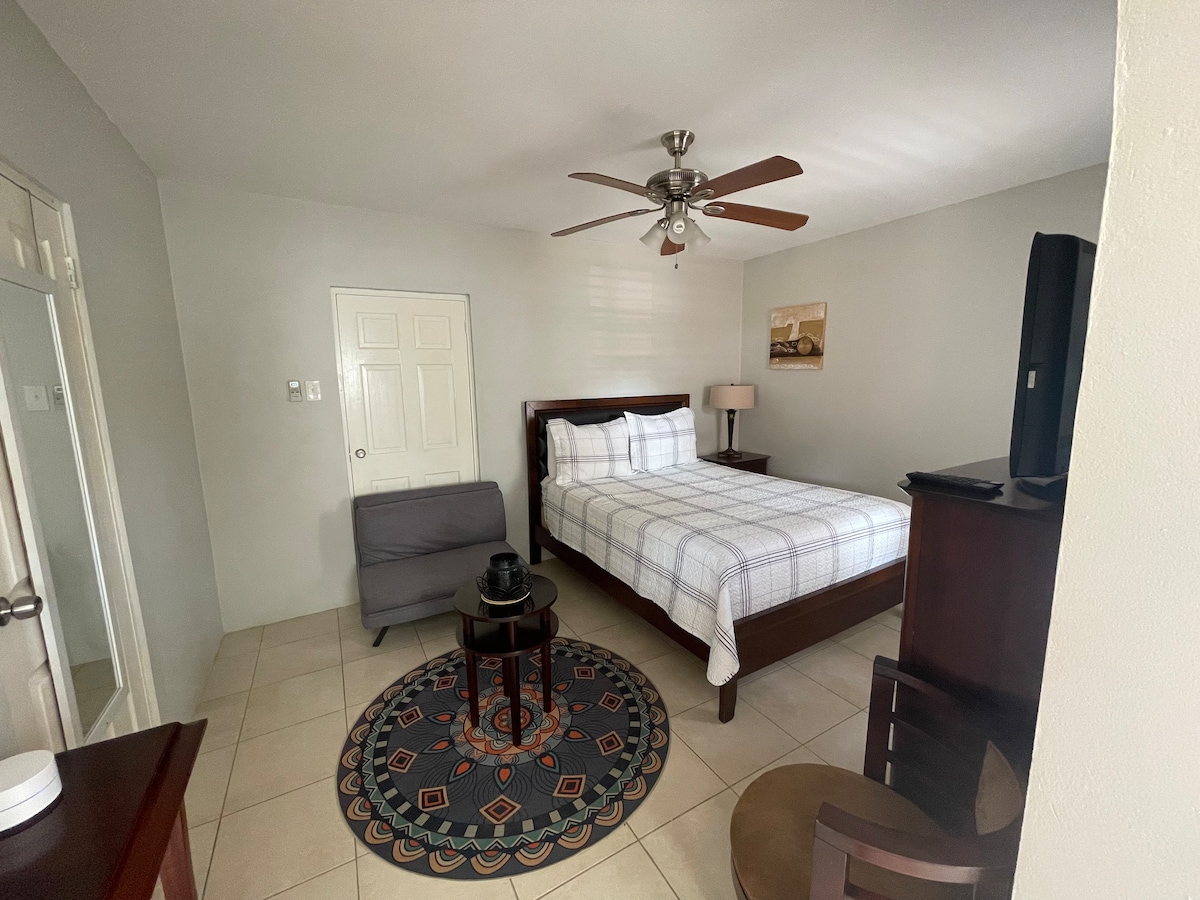 Pitaya Suites: tu sereno refugio tropical a pocos minutos del corazón de la ciudad. Escondida en un exuberante jardín tropical, nuestra suite de un dormitorio ofrece el equilibrio perfecto entre comodidad moderna, belleza natural y comodidad sin esfuerzo. Tanto si viajas por trabajo, como si eres un explorador solitario, una pareja en una escapada romántica o un nacional que regresa, Pitaya Suites te invita a relajarte, recargar las pilas y descubrir San Vicente y las Granadinas a tu propio ritmo, aislado pero perfectamente conectado.