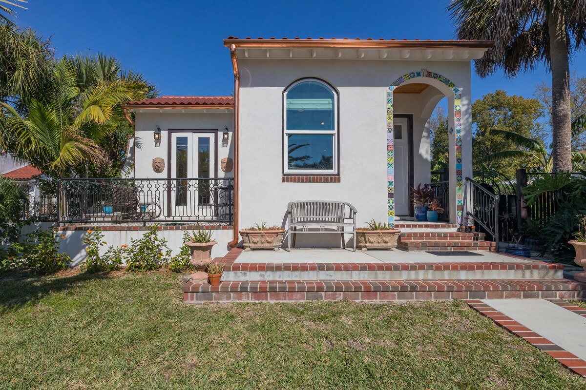 Bungalow Sea-Glass. Retiro tropical y tranquilo. ¡Todos son bienvenidos aquí! Siente cómo tus preocupaciones se desvanecen mientras la brisa tropical susurra en el jardín privado, disfruta de características únicas como hamacas colgantes y porche protegido. Este espacio único tiene personalidad propia. Los detalles artísticos resaltan este garaje convertido en un estudio moderno. Cuando no estés relajándote en este oasis tropical, explora el faro, la granja de caimanes y observación de aves, las playas de arena blanca, The AMP y el centro de la ciudad, todo esto a menos de 1 milla de distancia.