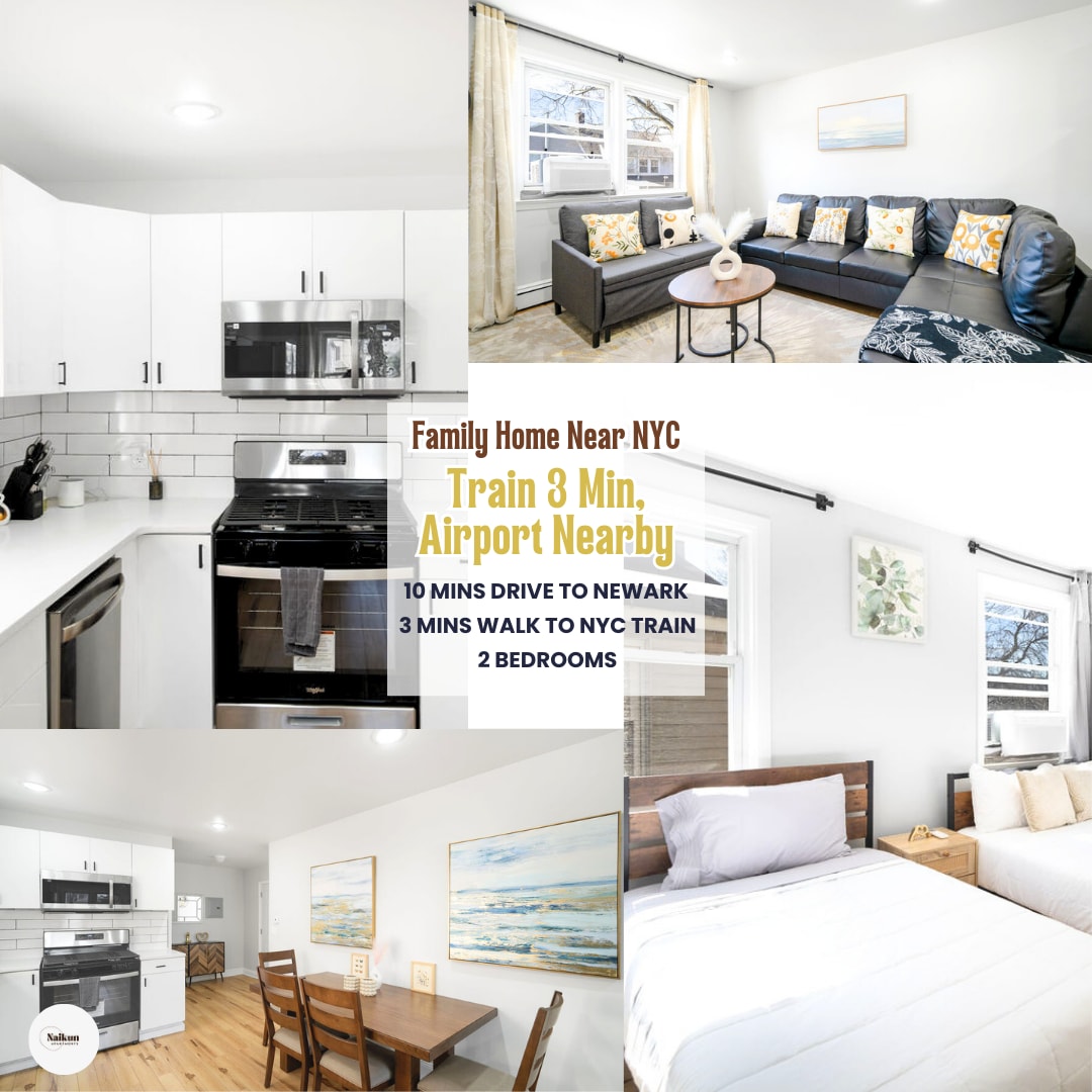 ¡Entra en tu hogar ideal lejos de casa! Este apartamento de 3 dormitorios y 2 baños bellamente amueblado está perfectamente situado en el primer piso, a pocos minutos del Aeropuerto Internacional Libertad de Nuevaark (EWR). Disfruta de un fácil acceso a la ciudad de Nueva York para pasar un día emocionante, mientras regresas a la serenidad y la comodidad de tu retiro privado. Con prácticas tiendas y restaurantes cerca, este es el lugar perfecto tanto para la relajación como para la aventura. Disfruta de lo mejor de ambos mundos: la vibrante ciudad de Nueva York y la comodidad tranquila. TEN EN CUENTA QUE NUESTRO HOGAR ES UN ENTORNO SIN ZAPATOS EN TODO MOMENTO.