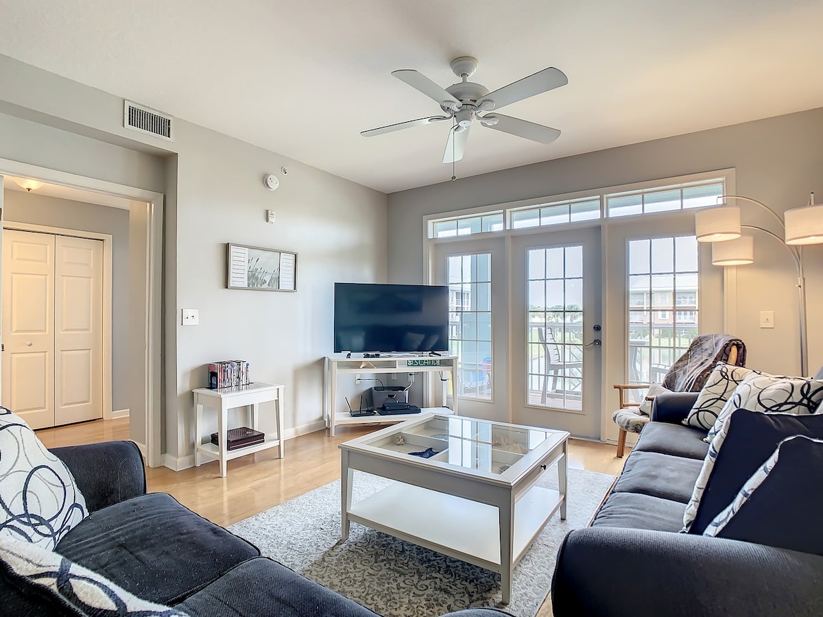 ¡Amplio condominio de 2 dormitorios/2 baños a solo 10 minutos de Mayo Clinic y Town Center! Cada suite King tiene baño privado, vestidor y Smart TV. Disfruta de wifi gratis, lavandería en la unidad y servicios completos de resort: piscina, gimnasio y más. Ubicado en un edificio seguro con ascensor y aparcamiento gratuito. Perfecto para estancias médicas o visitas prolongadas. Relájate con comodidad, explora los restaurantes y tiendas cercanos o dirígete a la playa a solo 15 minutos. El fácil acceso a la I-295 hace que todo esté al alcance.