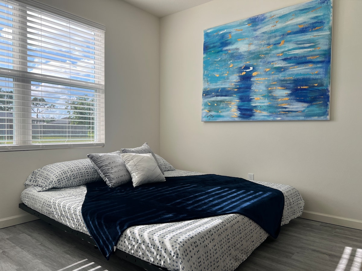 Relájate en esta acogedora habitación privada con una cama tamaño king y un sofá cama doble con comodidades modernas. Perfecto para parejas, una familia de 3 personas, viajeros solitarios o visitantes de negocios, el espacio ofrece un refugio sereno con un entorno apto para el trabajo. También tendrás acceso a lavanderías en el hogar para mayor comodidad. Ubicada en un vecindario tranquilo, la propiedad está cerca de restaurantes, tiendas y atracciones locales, por lo que es una base ideal para tu estancia en Port St. Lucie. Estacionamiento gratuito en el lugar.
