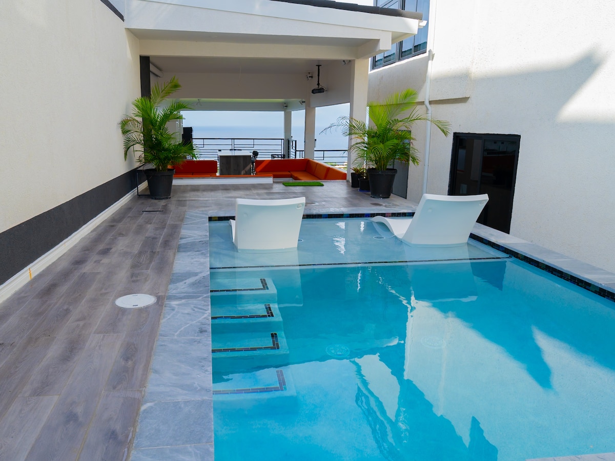 Wake up above the Caribbean Sea in a fully staffed 5-bedroom private estate just minutes from Ocho Rios and Ian Fleming International Airport. Designed for milestone birthdays, elevated girls trips, couples traveling together, and intimate destination celebrations. Saltwater pool. Jacuzzi sunsets. Fire-pit lounge. Chef-prepared dinners under the stars.