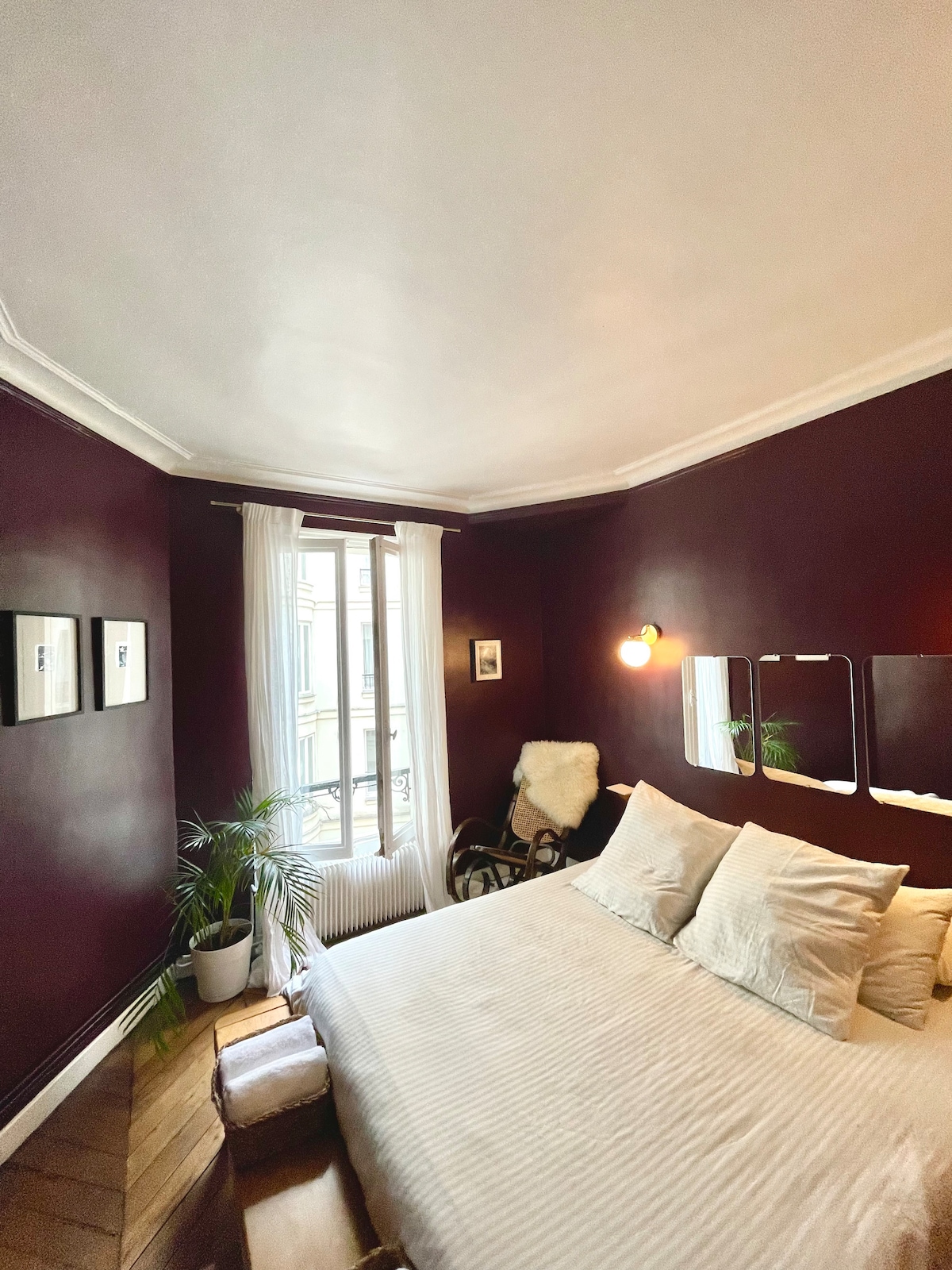 This charming large one-bedroom apartment in Pigalle/Rochechouart features a bright living room with original wooden floors, a fireplace, a comfy sofa bed and a double balcony that is perfect for morning croissants from the bakery below. The kitchen is well-equipped, and the bathroom includes a bathtub and rain shower. Located near Rue des Martyrs, Sacré-Cœur, and local cafes, it's literally steps away from supermarkets, a park, specialty coffee and Friday's Local Produce market at Anvers Square